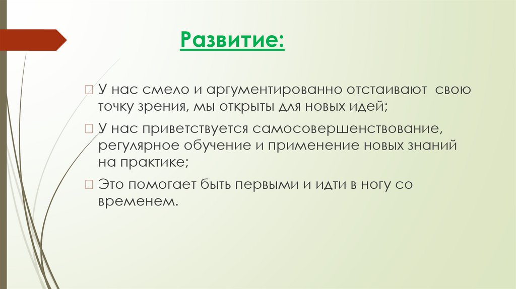 У нас смело и аргументированно отстаивают свою точку зрения, мы открыты для новых идей;