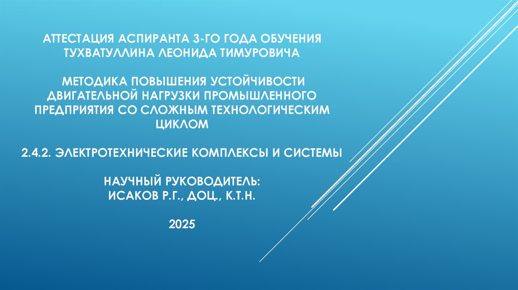 АТТЕСТАЦИЯ АСПИРАНТА 3-ГО ГОДА ОБУЧЕНИЯТУХВАТУЛЛИНА ЛЕОНИДА ТИМУРОВИЧА