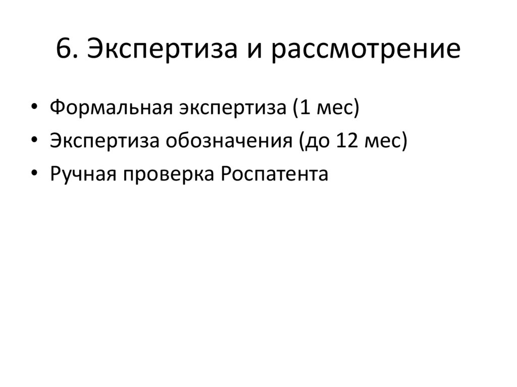 6. Экспертиза и рассмотрение• Формальная экспертиза (1 мес)