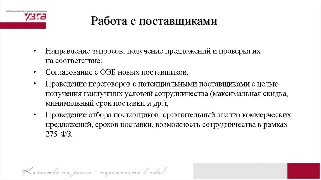 на соответствие. Проведение переговоров с потенциальными поставщиками с целью получения наилучших условий сотрудничества (максимальная скидка, минимальный срок поставки и