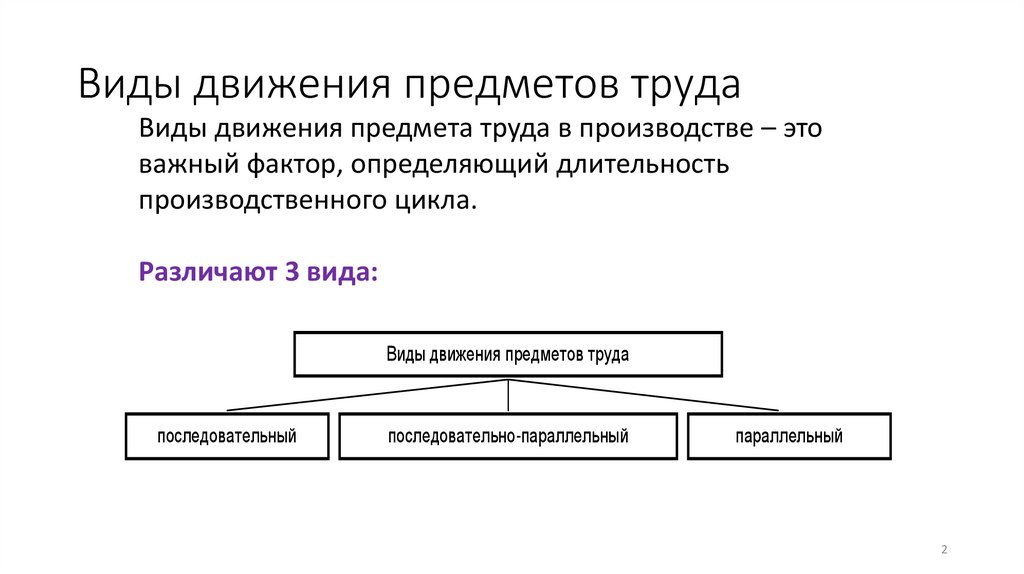 Виды движения предмета труда в производстве – этоважный фактор, определяющий длительность
