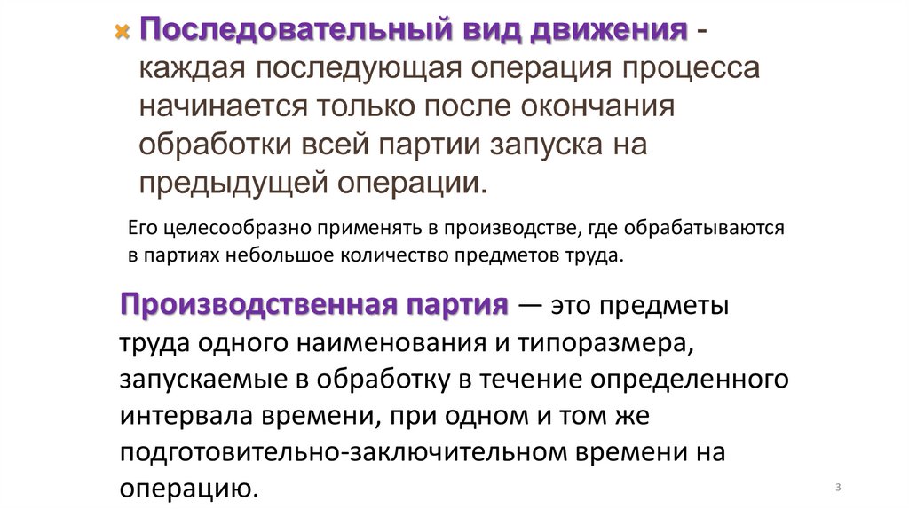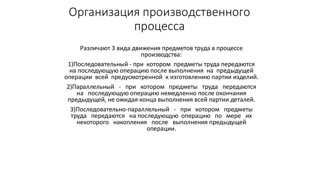Различают 3 вида движения предметов труда в процессепроизводства: