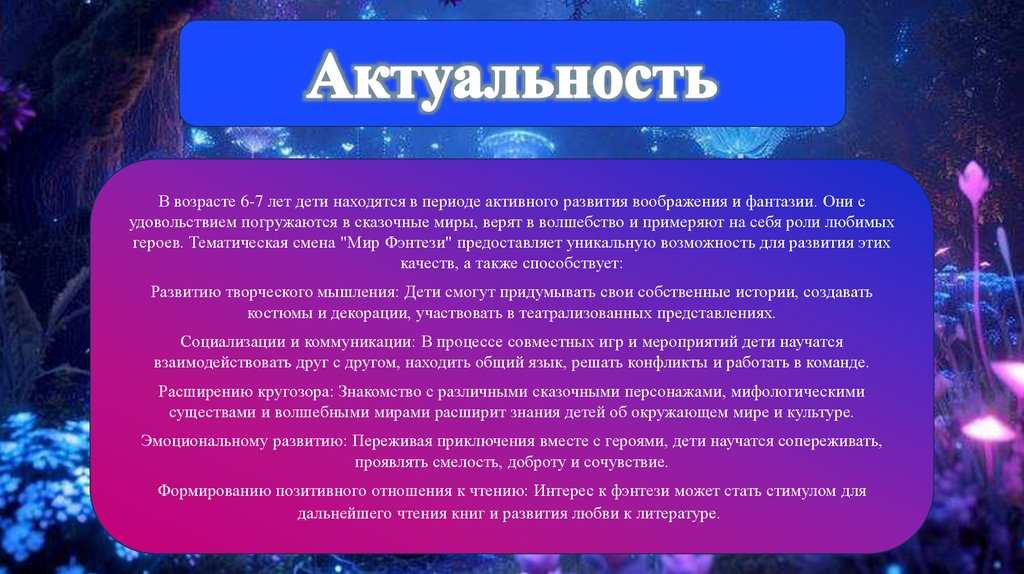 героев. Тематическая смена "Мир Фэнтези" предоставляет уникальную возможность для развития этих