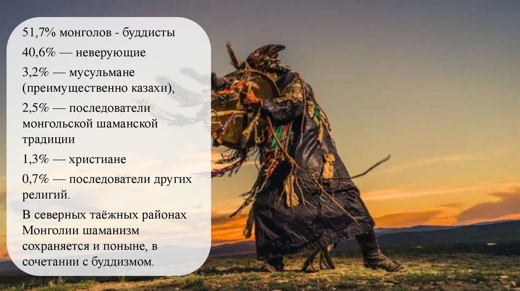 51,7% монголов - буддисты40,6% — неверующие