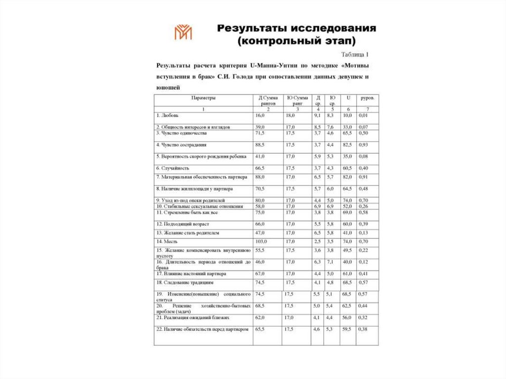Личностные особенности и представления о себе и о желаемом супруге у замужних и незамужних женщин