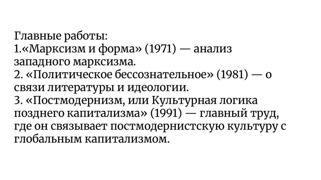 позднего капитализма» (1991) — главный труд,