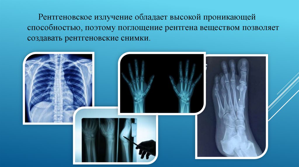 Рентгеновское излучение обладает высокой проникающейспособностью, поэтому поглощение рентгена веществом позволяет