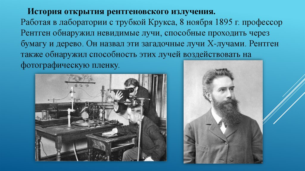 бумагу и дерево. Он назвал эти загадочные лучи Х-лучами. Рентген