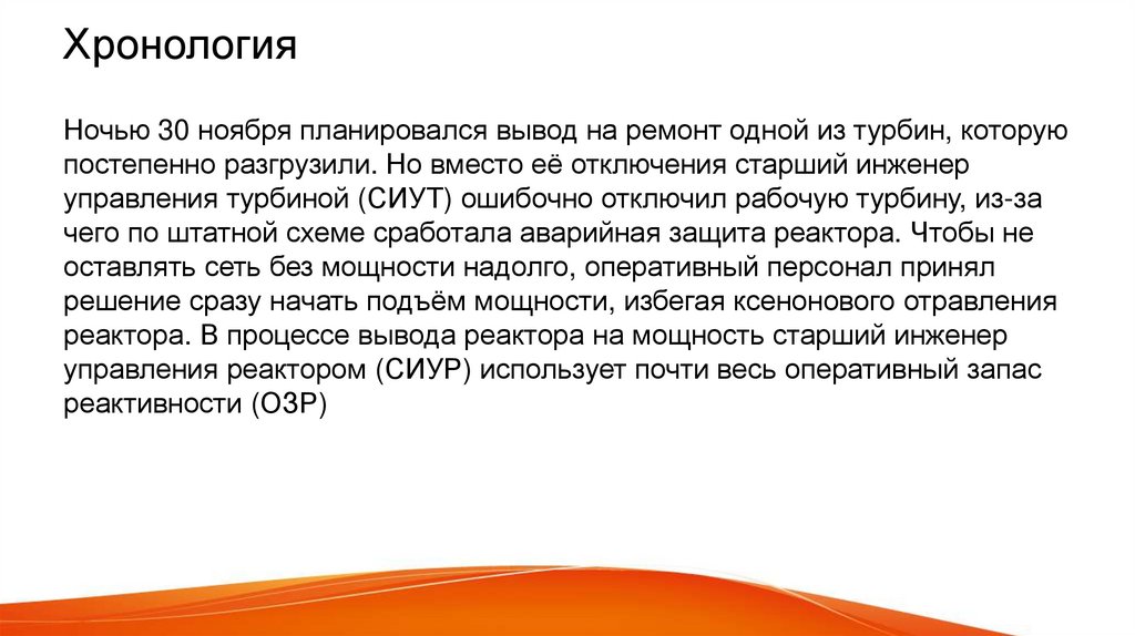 ХронологияНочью 30 ноября планировался вывод на ремонт одной из турбин, которую