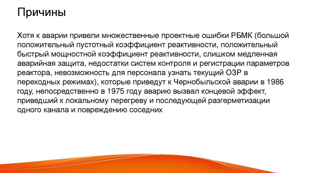 ПричиныХотя к аварии привели множественные проектные ошибки РБМК (большой