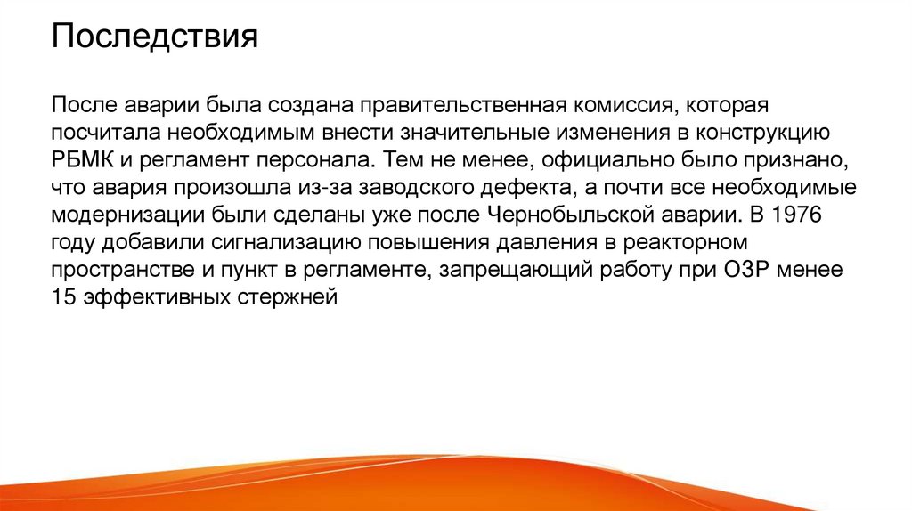 ПоследствияПосле аварии была создана правительственная комиссия, которая