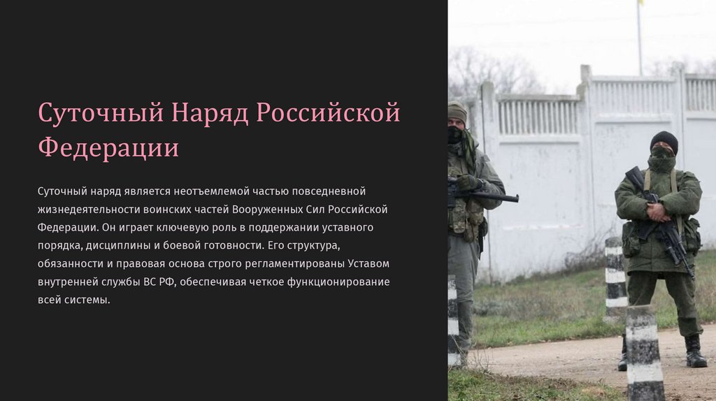 Суточный наряд Российской Федерации играет незаменимую роль в обеспечении безопасности, дисциплины и боевой