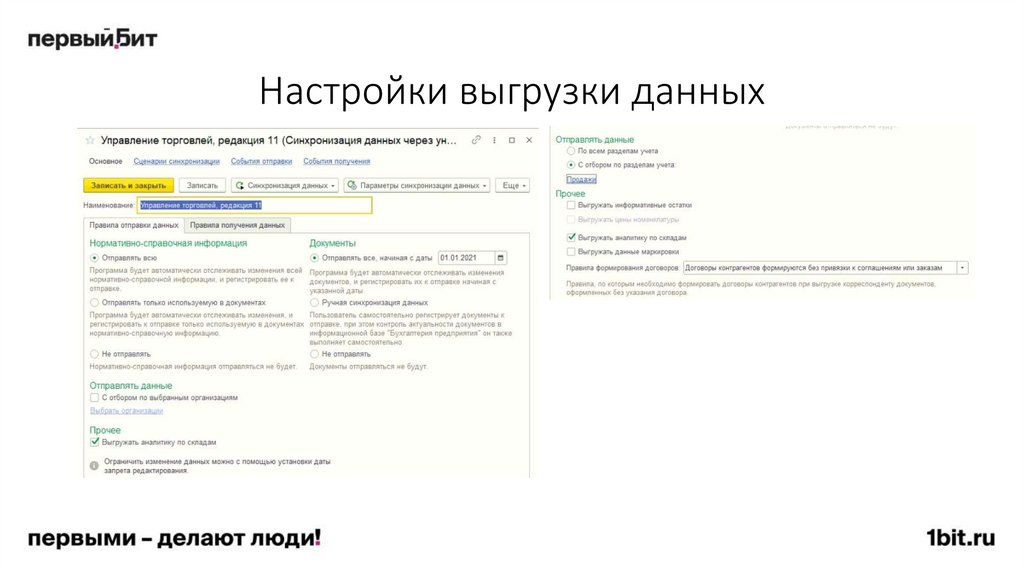 110. Настройки выгрузки данных