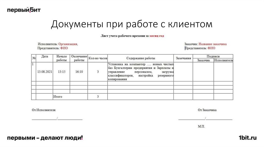 закрепленного за клиентом Менеджера или его Руководителя, акты сдачи-приемки работ
