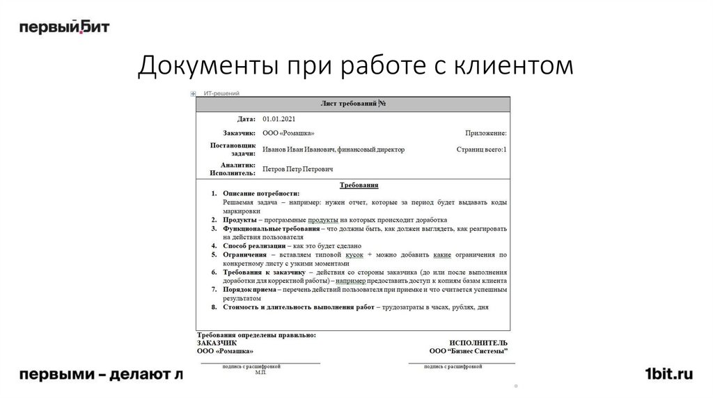 подписания листа требований.