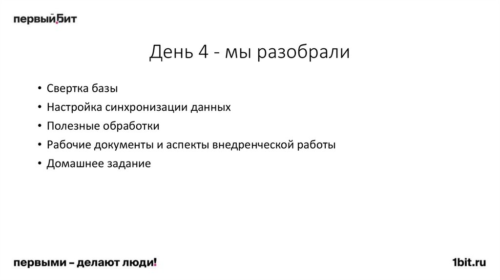 День 4 - план действий:• Свертка базы