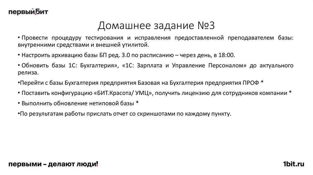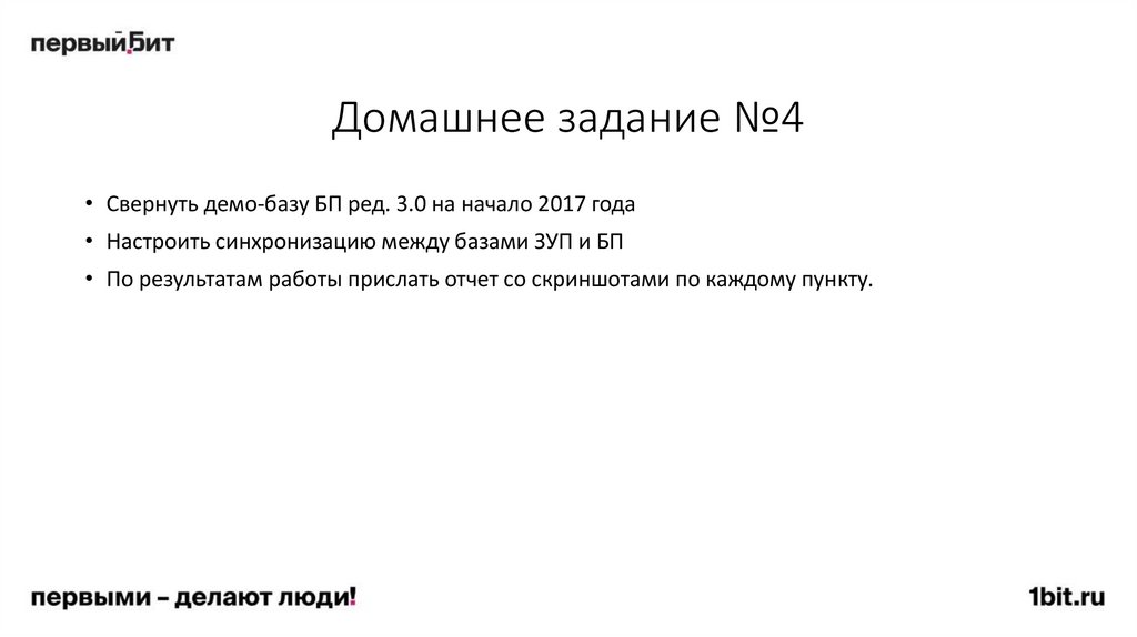 Домашнее задание №4• Свернуть демо-базу БП ред. 3.0 на начало 2017 года