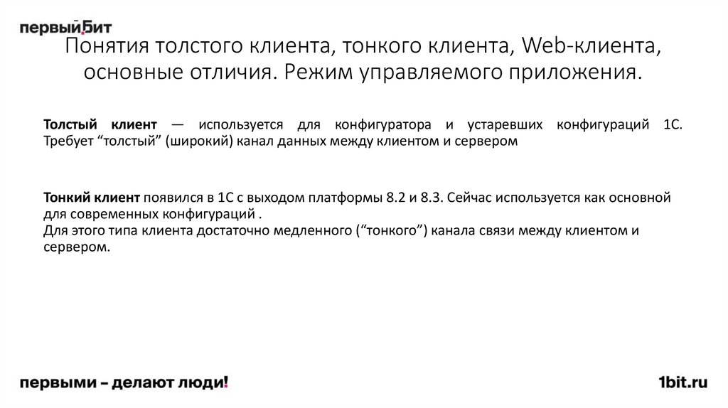 14. Понятия толстого клиента, тонкого клиента, Web-клиента, основные отличия. Режим управляемого приложения.