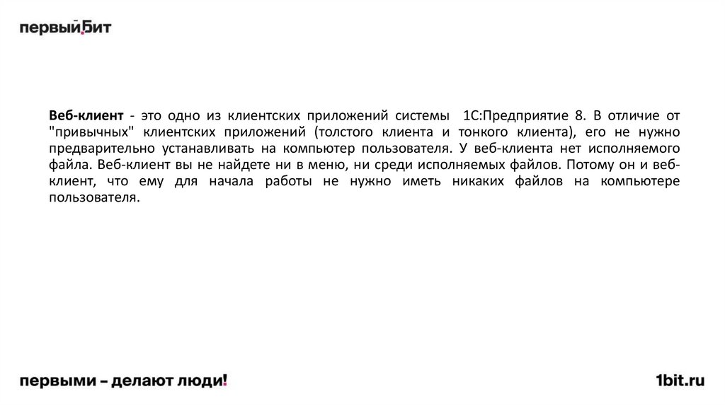 предварительно устанавливать на компьютер пользователя. У веб-клиента нет исполняемого