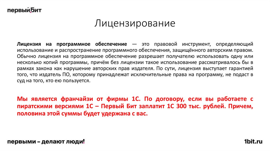 пиратскими версиями 1С – Первый Бит заплатит 1С 300 тыс. рублей. Причем,