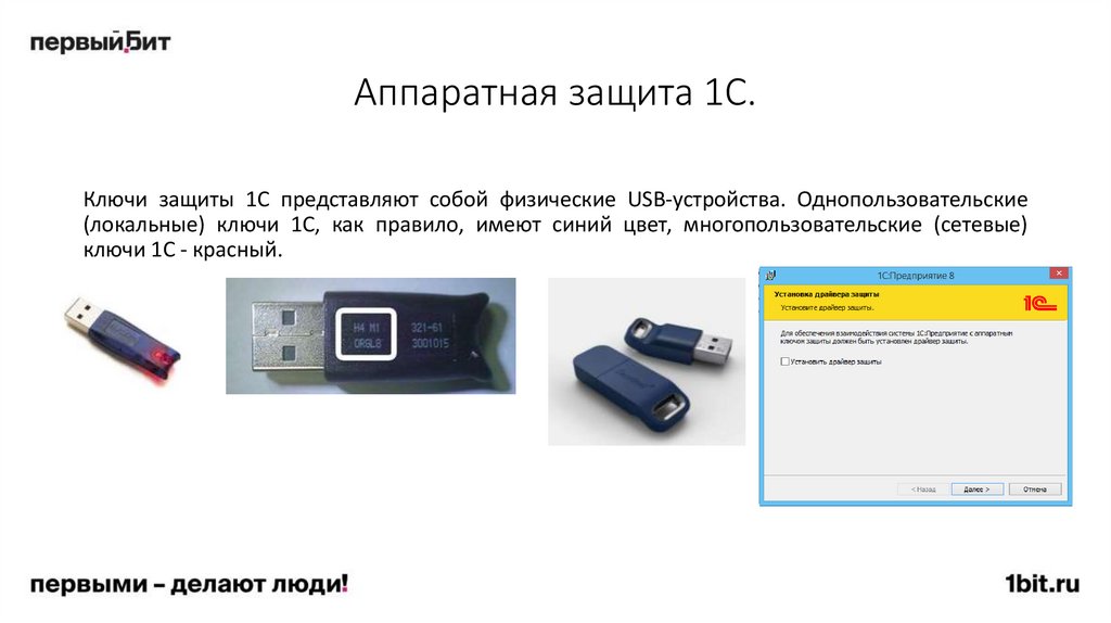 Аппаратная защита 1С.Ключи защиты 1С представляют собой физические USB-устройства. Однопользовательские
