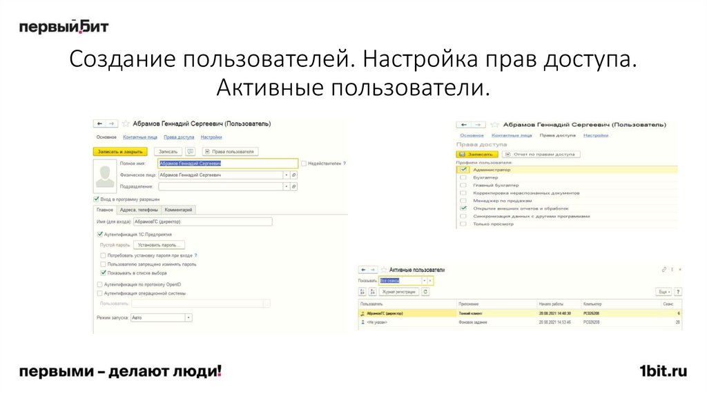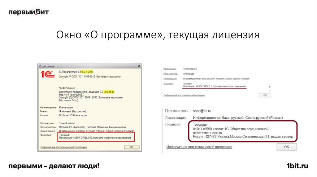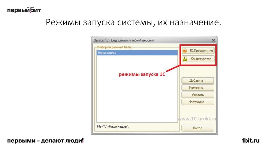 • Одновременно с одной информационной базой может работать только один пользователь.
