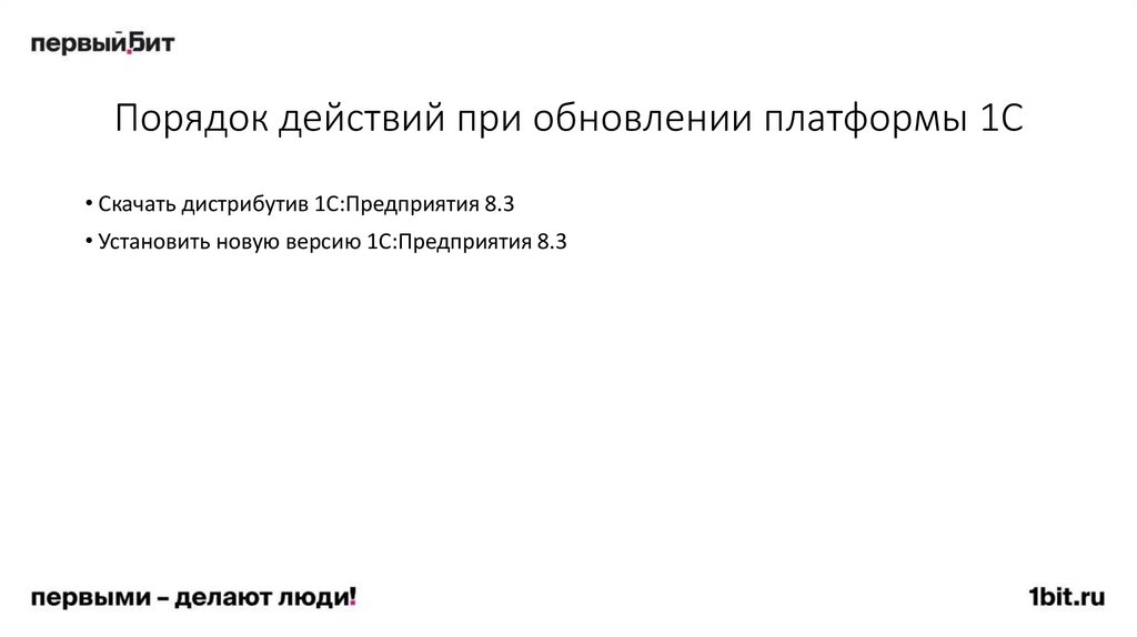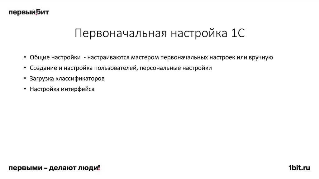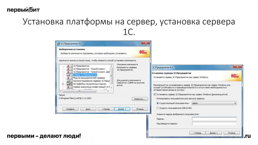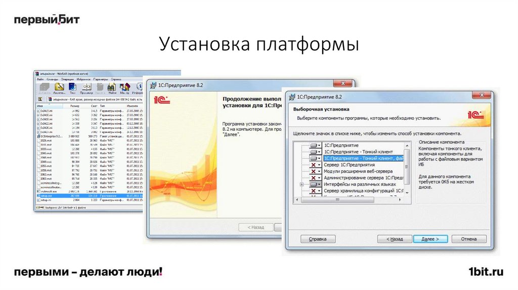 • Установка (установка платформы, типовой конфигурации 1С, отраслевой