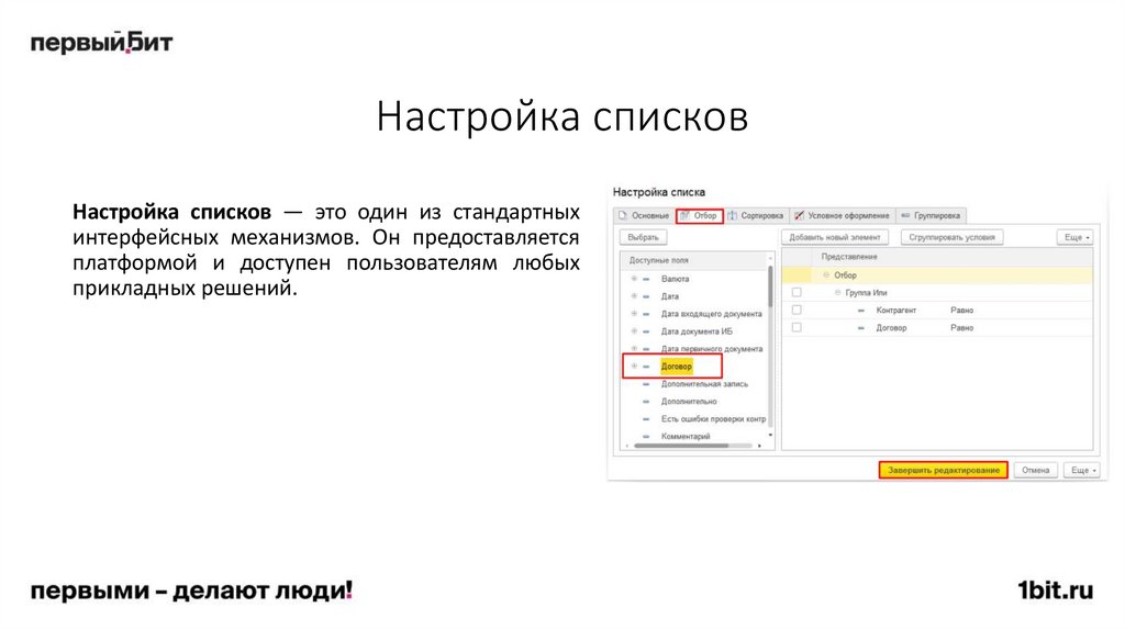 • функция «Изменить выделенные» в списка справочников и документов
