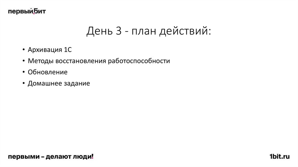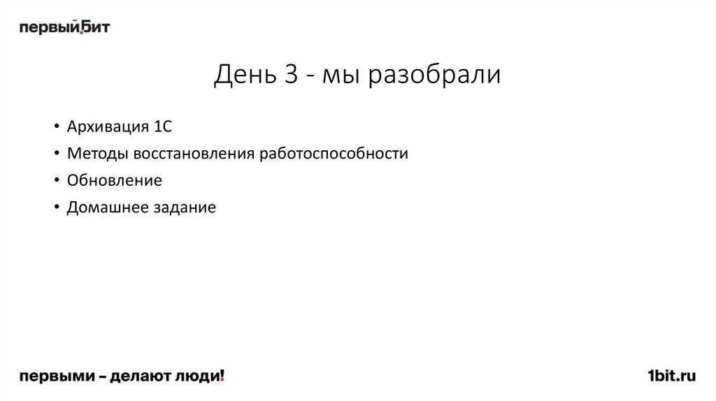 День 3 - мы разобрали• Архивация 1С