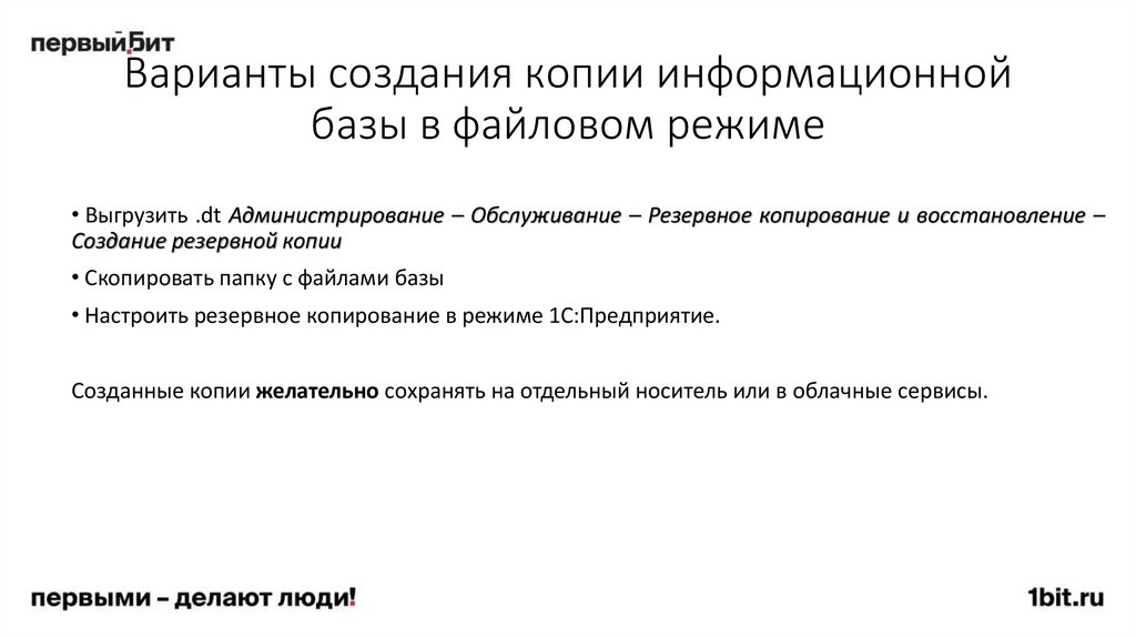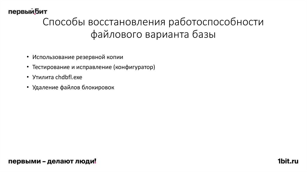 93. Способы восстановления работоспособности файлового варианта базы