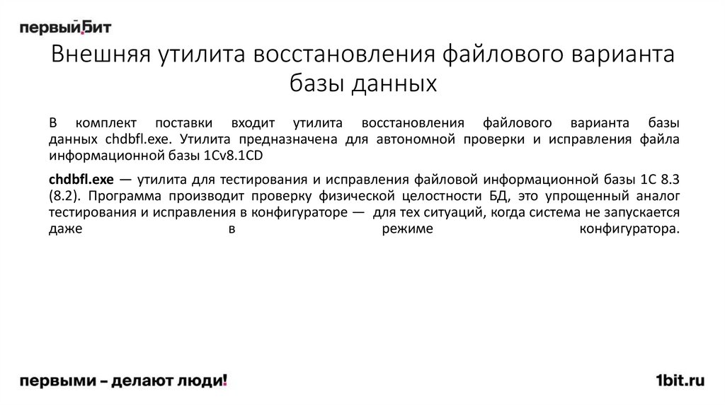 95. Внешняя утилита восстановления файлового варианта базы данных