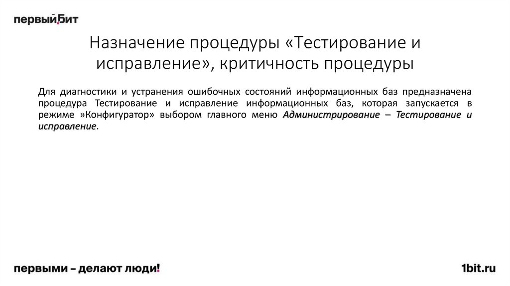 Порядок выполнения сверки96. Назначение процедуры «Тестирование и исправление», критичность процедуры