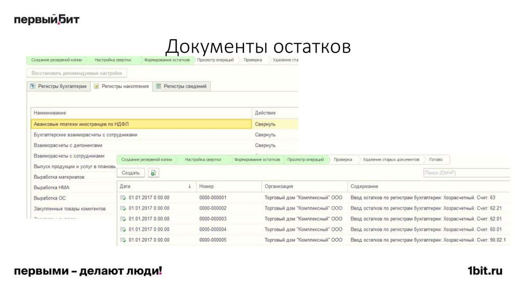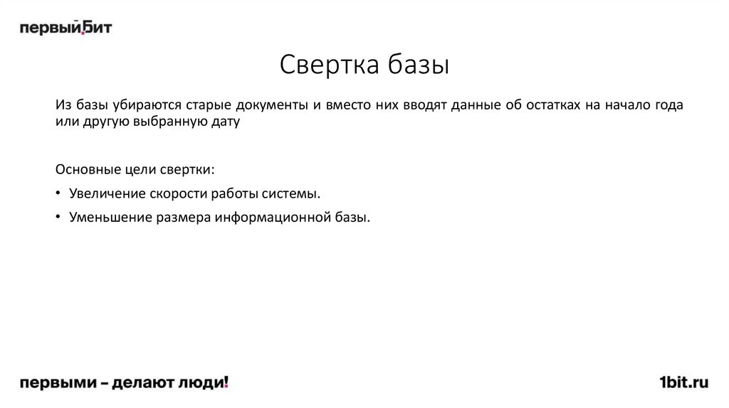 Свертка базыИз базы убираются старые документы и вместо них вводят данные об остатках на начало года