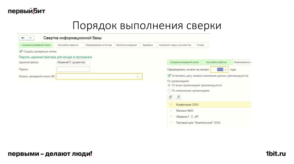 • Обновить базы 1С: Бухгалтерия», «1С: Зарплата и Управление Персоналом» до актуального