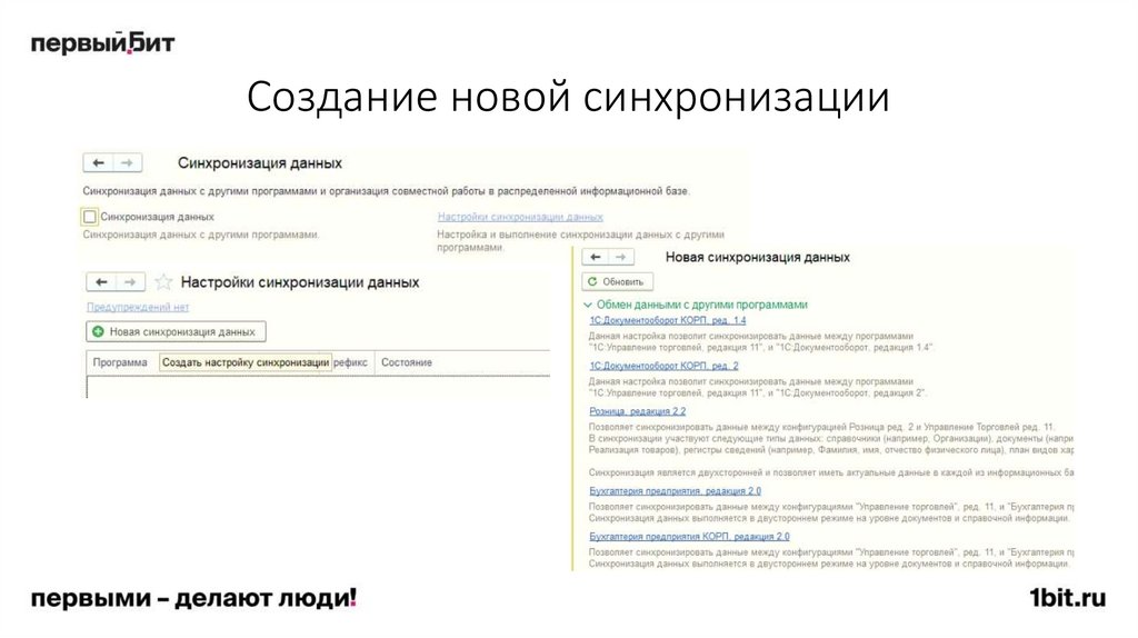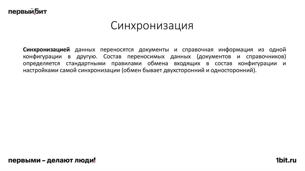 СинхронизацияСинхронизацией данных переносятся документы и справочная информация из одной