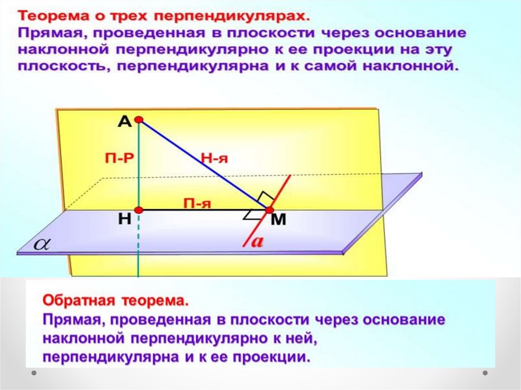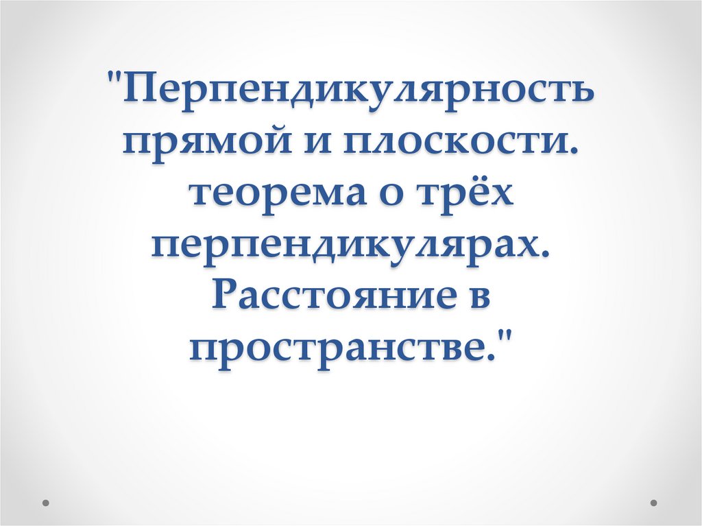 1. "Перпендикулярность прямой и плоскости. теорема о трёх перпендикулярах. Расстояние в пространстве."