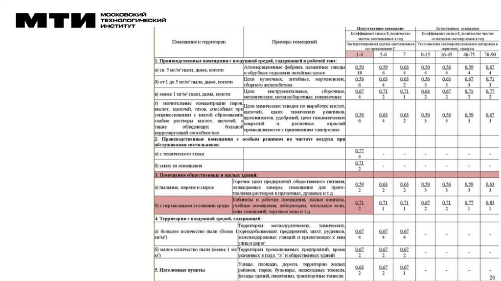Расчёт системы освещения. Практическое занятие №1