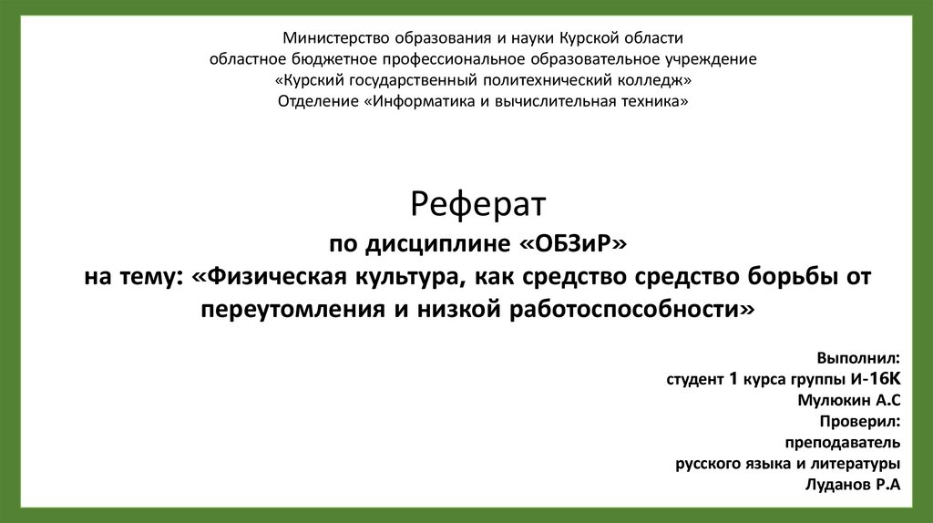 Министерство образования и науки Курской областиобластное бюджетное профессиональное образовательное учреждение