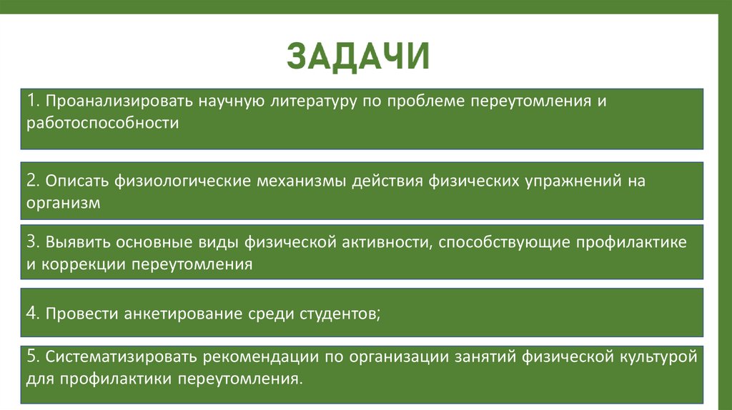 1. Проанализировать научную литературу по проблеме переутомления иработоспособности