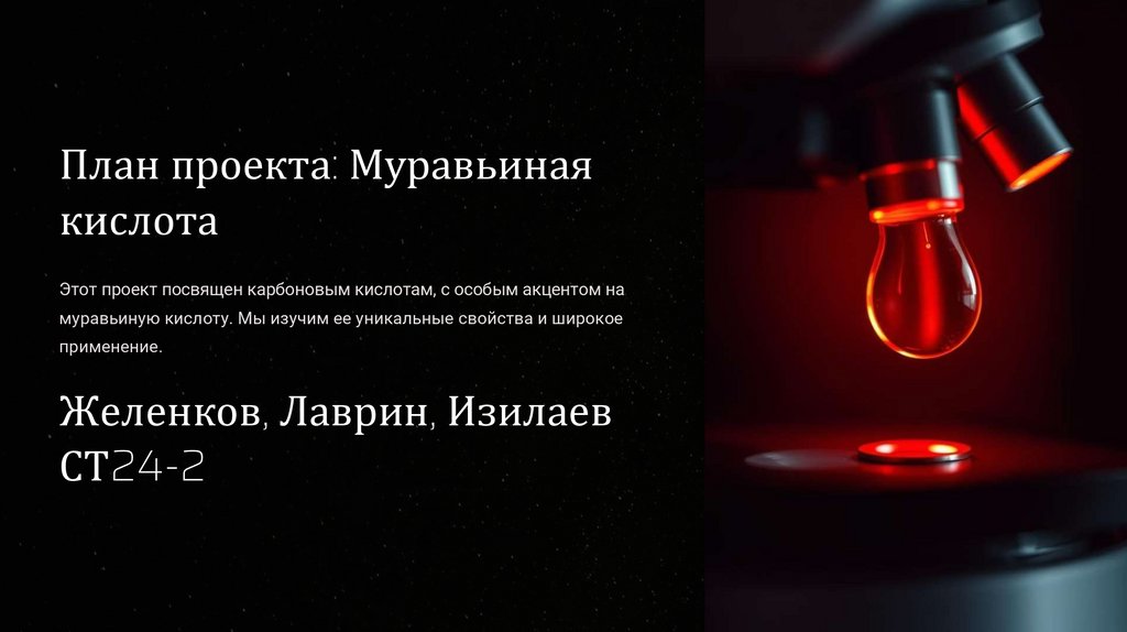 План проекта: Муравьиная кислота