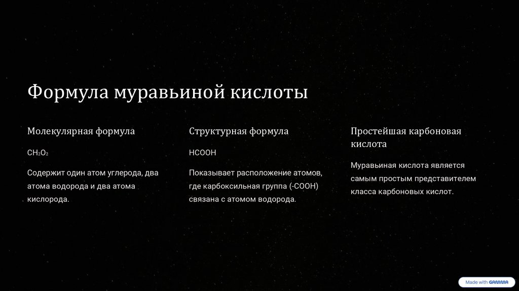 муравьиную кислоту. Мы изучим ее уникальные свойства и широкое