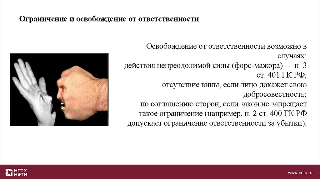 Ограничение и освобождение от ответственностиОсвобождение от ответственности возможно в
