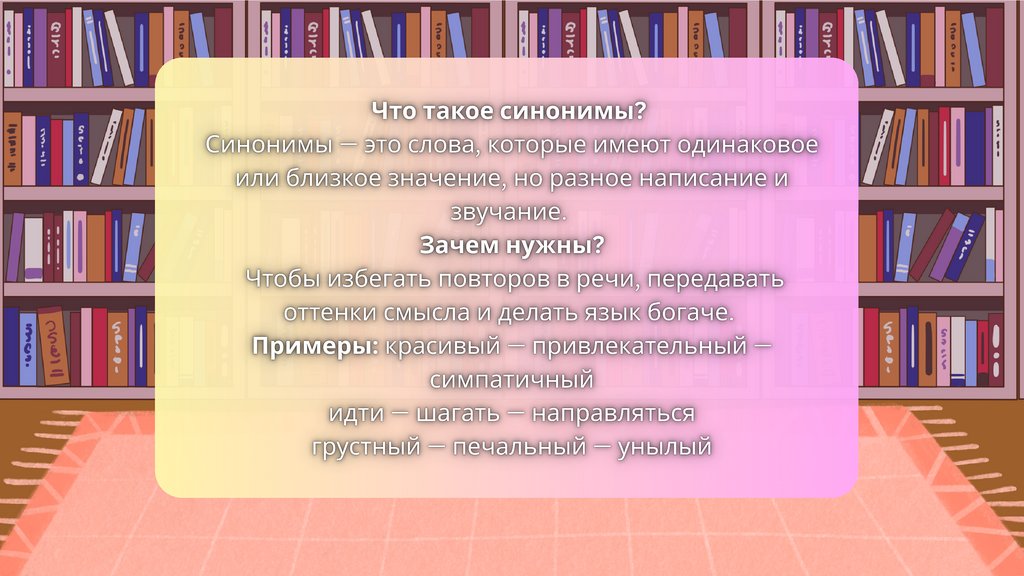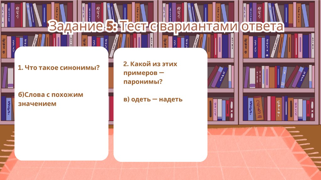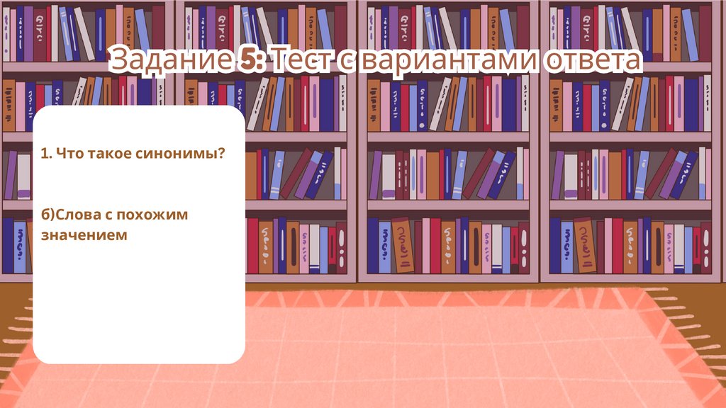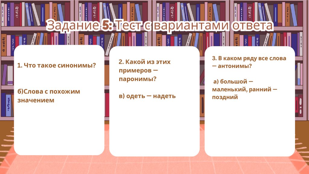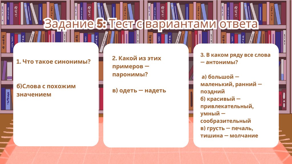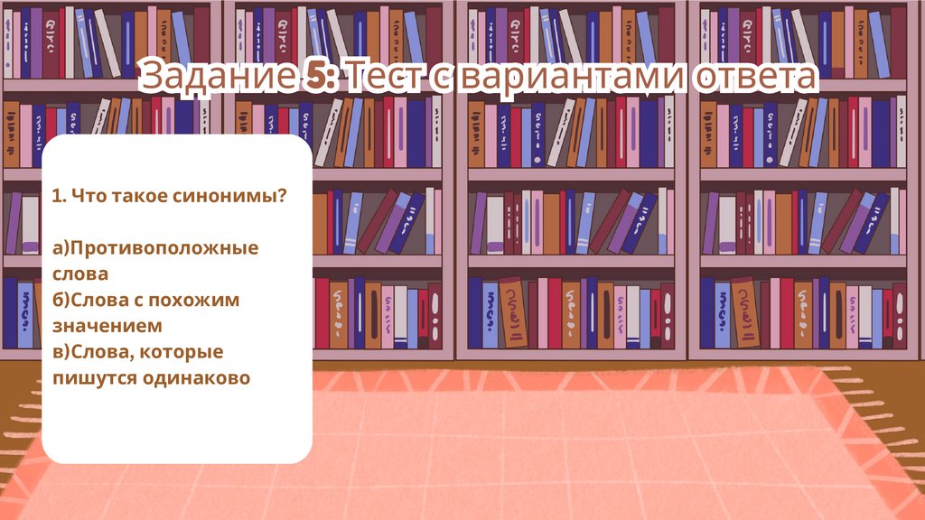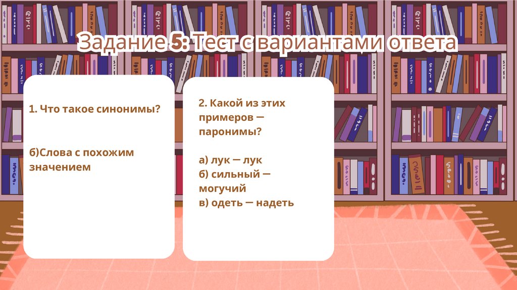 Задание 5: Тест с вариантами ответа1. Что такое синонимы?