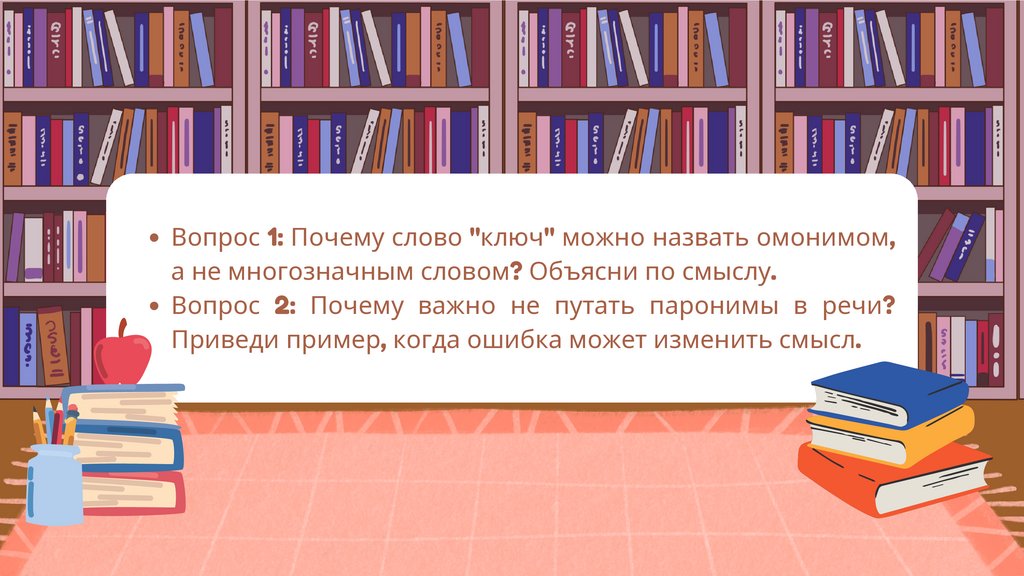 Вопрос 1: Почему слово "ключ" можно назвать омонимом,а не многозначным словом? Объясни по смыслу.