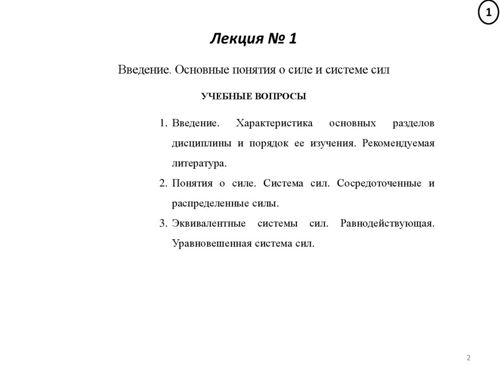 Введение. Основные понятия о силе и системе сил. Лекция №1