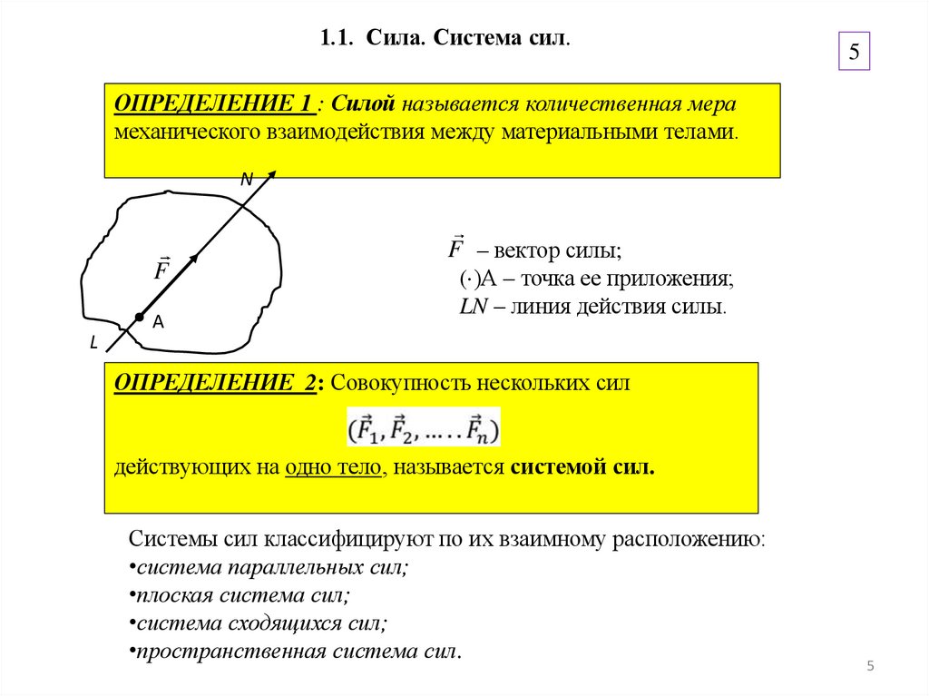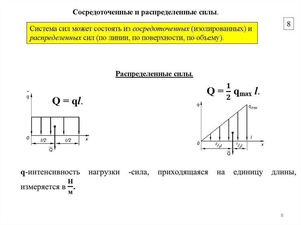 2. Понятия о силе. Система сил. Сосредоточенные и