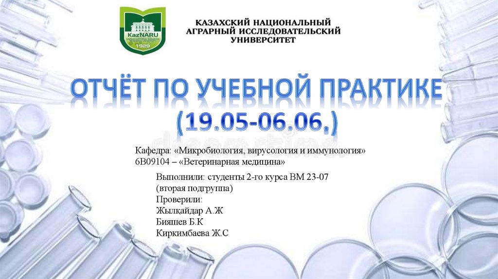 Кафедра: «Микробиология, вирусология и иммунология»6В09104 – «Ветеринарная медицина»