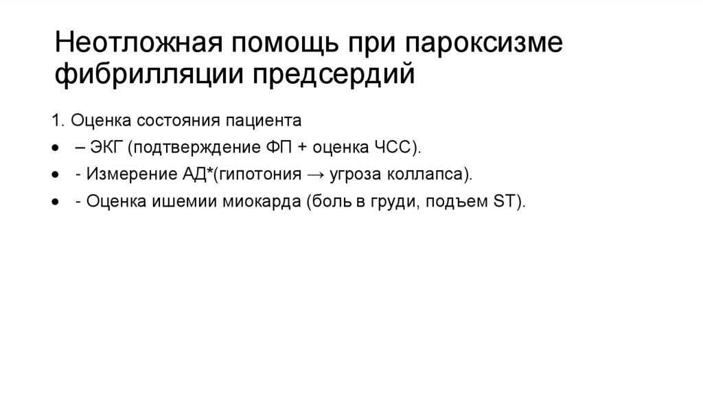 Неотложная помощь при пароксизмефибрилляции предсердий