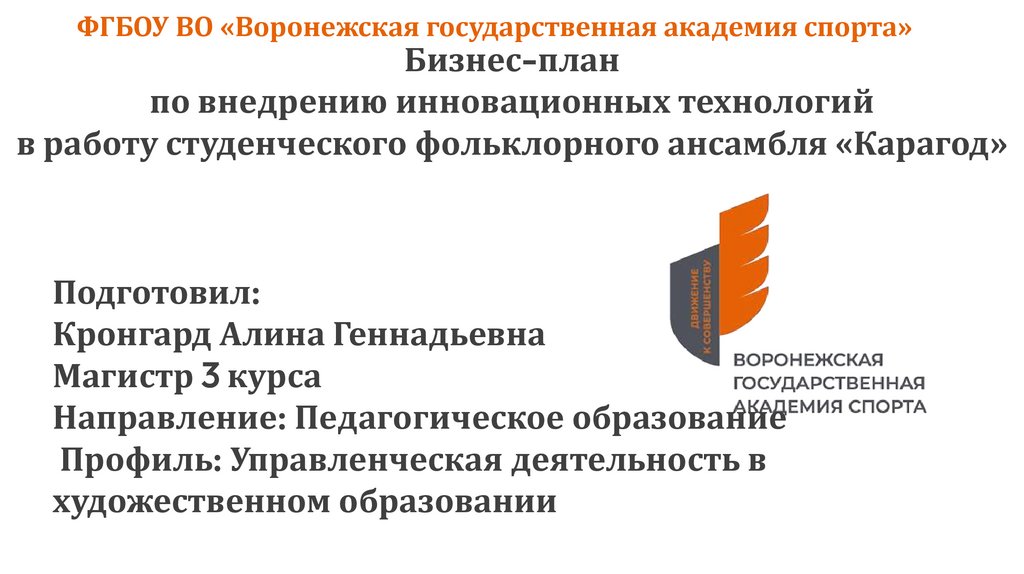 ФГБОУ ВО «Воронежская государственная академия спорта»Бизнес-план