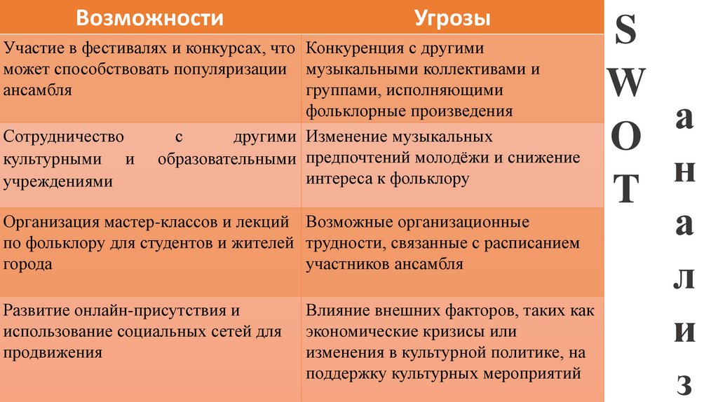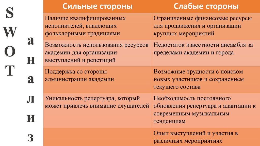 Возможность использования ресурсов Недостаток известности ансамбля за